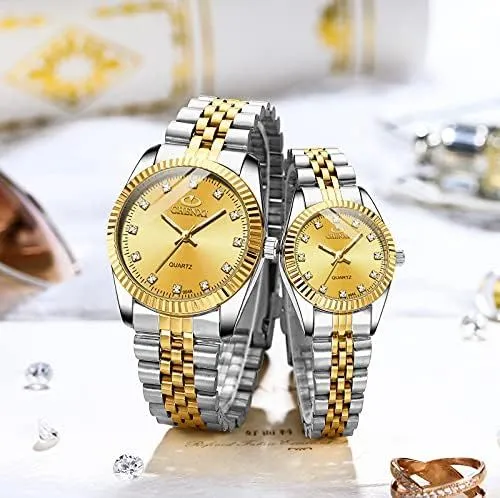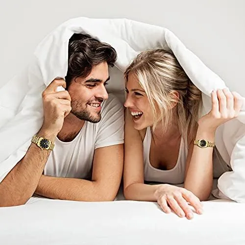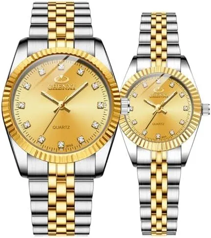 • Fashion Couple Quartz Wristwatch with stainless steel strap.